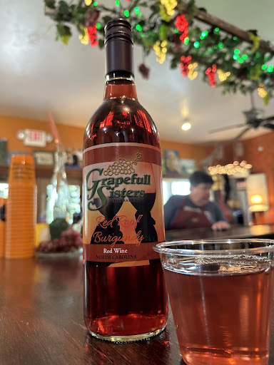 Grapefull Sisters offers everything an outstanding winery has: delicious wine, a friendly atmosphere, and plenty of spaces to relax. Driving up to the tasting room, we noticed the idyllic, rustic setting. The grounds were well-kept and offered lots of shaded, grassy areas for an afternoon picnic. Wrapping around the tasting room, the farmhouse front porch provides a wonderful place to sit in a rocking chair or porch swing and sip the day away. If you have a larger group, the tasting room has a screened-in side porch to accommodate you. As soon as we walked in, we were warmly greeted by Amy and Sheila--southern hospitality at its finest. These sisters own and operate the winery on land which has been in their family for generations so there is truly a sense of deep pride and commitment with these ladies. A picture of their parents is proudly displayed near the tasting bar which gives the visitor a sense how close-knit this family is. We were able to taste all their wines, and they offer something for every taste: dry, semi-dry and sweet wines. This vineyard is unique as they grow muscadines, a grape native to NC, and they grow all their grapes on-site. During our tasting, Amy was so knowledgeable about the health benefits of muscadines and recommended many food-wine pairings for us. They also offer non-alcoholic juices if someone in your party needs that option. After our tasting, we browsed their gift shop. Here we found jams and jellies made locally with local fruit, lots of handcrafted objects, and many on-trend, unique items made by artisans in the area. If you are looking for a laid-back afternoon or just need to escape the busyness of the beach, spend some time here supporting this wonderful,...