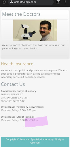 Read moreGot a fraudulent bill from these people. Even calls the number they say to call to talk about the bill and the phone line doesn’t even work. Says I owe them 10 bucks for slides that they say were done last August and now they are billing me in March? I was confused at first but then I went and I looked on my bank statements and I had no Covid test done or any type of test done or even been to the doctor for any reason in August or even around August. If you get a bill from these people double check that you actually had work done by them. People are getting real crazy with scams these days don’t even know how they got my...
