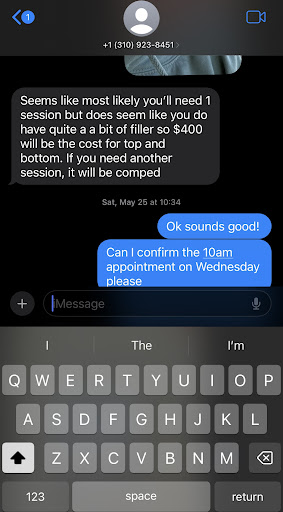 Read moreSharing my experience in hopes it saves someone else a headache down the line....There's plenty of qualified med spas in Los Angeles. Spend your money at a place that has integrity and honors their word.