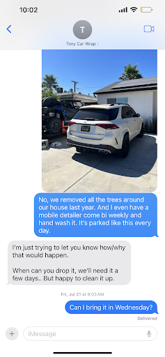 Read morePricing is on the low end of car wraps and staff are friendly. The low rating is due to the damage done to my car. It’s been about two years and I’ve decided to change the wrap. I brought it to a different Tesla certified wrap specialist. They did extensive documentation of the unwrapping process. There were countless chips and scratches from different tools. There were even some small dents around where the spoiler was attached. Side note: they did not attach the spoiler correctly. I would only go with this company again if I were looking for low budget wraps. I paid around $3200 and at this new place I’m paying closer to $8k. Definitely a huge price difference, but my car is getting better taken car off and I’m confident they will not cause further damage. I strongly recommend paying more for a better wrap, and professionals, who know how to install without damaging your cars...
