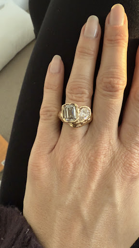 I sent some inspiration photos and they understood exactly what I wanted from the get go! Fie prepared three different designs, all beautifully prepared in a presentation. After choosing my favorite design, I ended up choosing to add a bespoke wedding band to go with my new engagement ring and they compliment each other so beautifully. I added the wedding band late and they were so good to accommodate the quick turnaround. I left my ring with them in mid August and by the end of September I had two brand new beautiful rings.