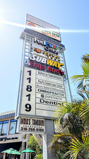 quite possibly the most diverse strip mall in the Brentwood/West Los Angeles area. so let's say you're hungry... how about some Mexican, Italian, Vietnamese, Japanese or Indian? or maybe just a subway sandwich. feeling kinda fatty fat fat after eating? no worries, take a few steps to the manual arts studio or the yoga spot. what if you spill your lunch on your clothes... guess what... dry cleaners just around the adjacent bend... and after all is said and done maybe you'd like to make send something out to a friend cross country... kinkos/FedEx at your service. HINT: If you like Indian food, India tandoori has an awesome...