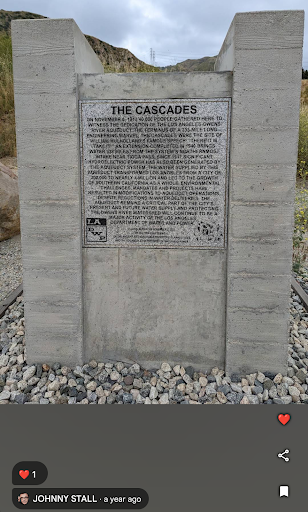 Read moreIt's beautiful to look at while sitting in traffic. Fun fact: take a look towards the left side and you'll see the OG aqueduct from 1913!! Really, really cool history here. This is how and why LA exists!! It exploded from 300,000 residents to 4 million!!