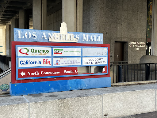 I wasn’t sure what to expect with the designated Los Angeles Mall sign. One thing to consider was the adjoining buildings of employees and visitors, giving a clue to the clientele. Next was seeing the homeless park, atop the plaza. Thus the difficulty keeping what could be a vibrant, cheerful and comfortable mall experience for everyone! There’s a few shops, services and eateries available. Areas with tables and chairs provide quick dining and meeting spots. Maintenance crews were visible keeping up the plaza. Cameras, security guards and police also provided public safety for those who wish to venture within. The times I’ve been here, I’ve not seen many people, perhaps because because of the lack of shopping possible. Couldn’t there be more attractive tenants as the shopping centers on Figueroa Street? Wouldn’t large signs then help attract shoppers from the high traffic 101 Freeway, beyond the lunchtime crowd from surrounding buildings? I guess the local parking expenses may also be a deterrent! The lost business is apparent and the fact that the restrooms were closed gives a sense of a...