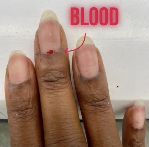 First, my powder dip appointment starts 20 minutes late ā which is fine, life happens. However, when my manicurist finally begins, sheās unreasonably rough: my cuticles eventually start to bleed as she hacks at them. She cuts my (natural) nails down before asking what shape Iād like them to be. In general, sheās unapologetic and just plain rude.