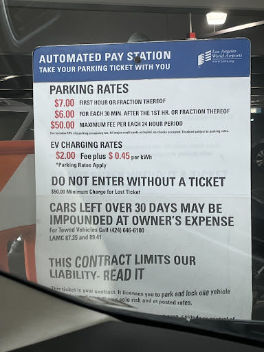Read more$2 base + 0.43/kWh (when we came on a Sat around 9am) There were A LOT of charging lots on level 3. If you have a Tesla you need your adaptor since these are not Tesla chargers. There is a QR code you can scan to make payments. Yes, it is expensive but it was convenient to park here due to having plenty of open spaces to park at while dropping someone off at LAX not to mention this level directly connects to Tom Bradley Itn’l check-in (no need to take the elevator to another level). Saved me time to drive around looking...