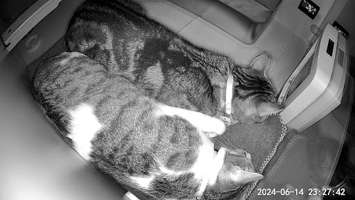Burney had a blast! I had the ability to see him any time I wanted in his spacious suite with his toys from home using an app on my phone. When I wasn't able to check in on him for a long period of time, Matt and Keith were very accommodating and texted updates to one of my relatives as well as to me. In addition, the app allowed me to view recorded clips of how my cat was doing during the times I couldn't actively check in on him. Burney is very active and needs at least 1 hour of playtime a day along with attention and pets, and it seemed clear to me that he received that and more. He also was so content (not stressed at all) and didn't seem upset at all when I came back to pick him up-- in fact, he seemed like he didn't want to leave!