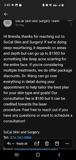 Read moreDr. Wang is the best! All of my friends and I are now patients at SoCal Skin and Surgery because she is an expert at transforming skin.
