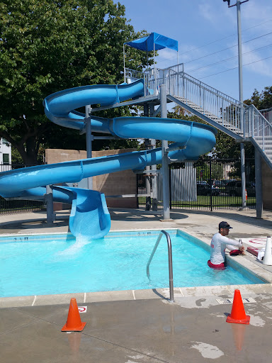 This place is cheap for public pool for the kids. It is $1 for kids and $3 for adults. It has a very shallow end like going to the beach where you walk into the water and it gets gradually deeper. Perfect bringing my 6 month toddler who can only sit in the 3 inch water and slash. It goes up to maybe 1.5 deep unless you cross to the other side that is still only 3.5 feet. It does have a 2 storey water slide but I think you have to be 6 and up to use it. When I went there was at least 6 life guard on duty. They have a lot of public lockers and changing rooms. They are very strict on that everyone entering has to have a real bathing suit no...