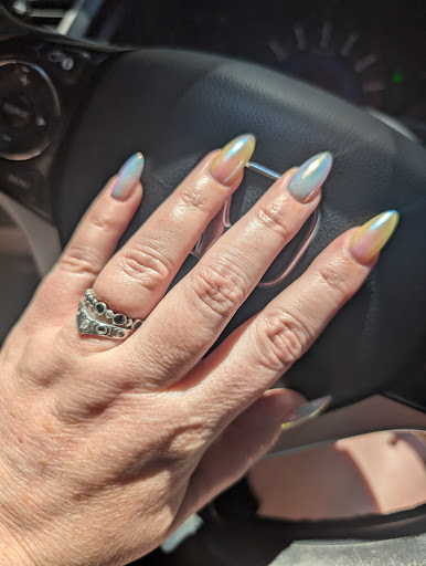 Read moreI usually get regular pedicures at Sugar Nails as it is close and usually have s short wait time for walk-ins for a simple mani or pedi. I occasionally treat myself to extensions/acrylics for special events. I did actually walk in for this service, and there was about a 10 min. wait, WELL worth it! Tina is a TRUE professional. We discussed nail shape, I was sure I wanted almond, so that was easy. I was unsure on length, so we she pulled out assorted sized so we could compare. I chose a medium Gel X. I wanted something that had a mermaid feel to it, but not not a green or blue. This chrome finish was perfect, she used a pale white base polish, with a GW19 and GW20 (if memory serves) alternating to give my nails a mother of pearl look which I LOVE!! Minus the 10 minute wait at the start(which again, is all on me as I did not make an appointment, I was a walk-in)from start to finish the service took 1 hour and 5 mins. While Tina is not a super chatty Nail Tech, she is a TRUE talent, and is very good an intuiting what you are looking for. She was very gentle, and when she could sense my hands were tensing up(I have anxiety) she would tell me what to expect, ie - I would feel heat when the UV light was applied to fix the nails in place. When I was undecided on the chrome color, she suggested we just do both as one was a pink(warm tone) and one was a blue(cool tone). The images I included were taken on day 10 of wear, AFTER being at San Diego Comic Con for a week of that 10 days. No chipping, no jagged edges, the nails look NEW and they have been run thru packing, unpacking, travel, costume changes, outdoor activities, swimming, exercise, late nights, etc. I did do some after care, such as cleaning under the nails daily and moisturizing at least twice a day, but the nails hold up really well. I did have them shorted a little once I was back from vacation and they were a little longer than I normally wear. But the nails are still going strong and looking beautiful. I normally can't wait to take off nails as I am used to much shorter natural nails, but these are some well done I am enjoying them while they last. The price point was just right for the work put into them. I always have a good experience at Sugar Nails, but this was such a stand out, I had to review. If you are looking for a great nail tech, I can not sing Tina's praises loud enough. Honestly anyone on the team is great and you can't find a...