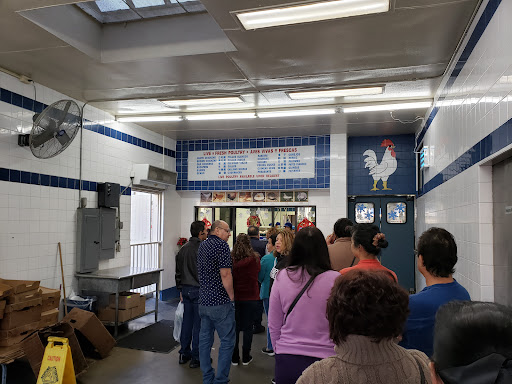 Can't miss this place - it's the place with the huge cock, I meant, rooster on it's roof. Be warned, if you can't stand the smell or sight of animals, this might not be the place for you. You might want to mosey into a butcher or Vons for your chicken breasts.
