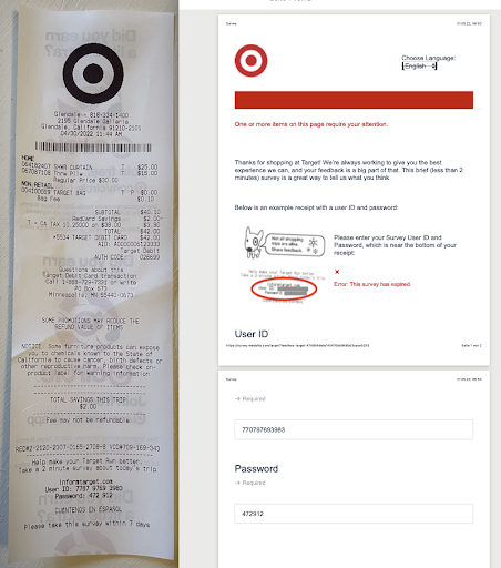 To add oil to the fire, I tried the survey as invited on the payment slip. It suggests I do this within seven days. Well, I shopped yesterday. The survey says I am too late. Target must have lost...