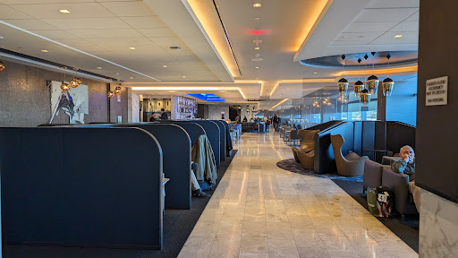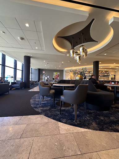 Overall, great lounge with many sitting areas that were spaced out. The back area behind the escalators was much less crowded with additional restrooms. Grab your food and drinks and head past the escalators if it's crowded in...