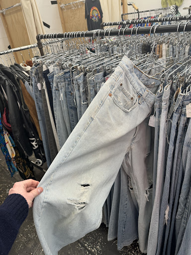 The reworked clothing and vintage clothing is all done in house and is one of a kind - jackets, coveralls, jeans, etc. There’s also a unique selection of vintage tees, band tees, and vintage Levi’s of all sizes for days.