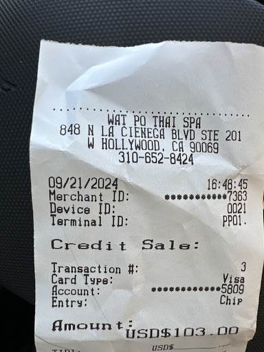 Read moreI have to say I love the service, courtesy, and professionalism at Wat pho! Checked in at the counter and requested for a deep tissue massage due to a week of travel for work and god.. was my upper and lower back and also my shoulders screaming in need of a good ol’ massage. Soon after I settled in the worker that goes by the name, “Yaya” asked me was there any part that she needed to be aware of and should focus on before the session even started and I told her which areas of my back I needed work and damn… I left there feeling relieved of the aches that I had during my work trip. I highly recommend Wat Po 10/10!