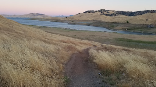 An unmarked parking lot with a scenic view of the reservoir with trails up and around the hill or down to the beach. Some people go fishing here. It has an ample size parking area but not recommended for cars. The drop off from the pavement to the dirt parking area is huge. Uneven gaps or deep holes/ cracks between the road and the curved. Going back into the road can be a problem on a busy traffic. My SUV felt like it cracks the axle when I pulled off to this area. Better avoid this spot. The one before this has a better vantage point and easier in and out....