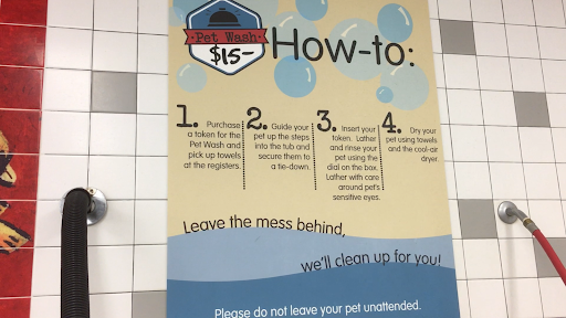 Walk into a great store where the motto is â if we wonât feed it to our pets, we wonât sell it to yoursâ. Search for high quality pet foods and accessories. The staff here is always great and willing to help. Check your local store for other benefits such as Veterinary clinics, Dog training, and adoptions days. One of my favorite features is the dog wash, where owners can come and wash their furry friend self-service style. Buy a token (buy 3 get one free is a great bargain). Pick up some towels and a rubber collar on the way in. Choose your station and walk you pup up the stairs to a waist high platform. There is a recessed tub and short tethers on the wall so you can keep the pet safe and manageable. Pick your 1 of 3 soap options and out come the soapy water from the hose. Pick your spray nozzle preference and lather up the fuzzy family member. Then switch to rinse and wash all the soap and grime away. Then towel dry and switch to a air hose dryer and fluff the pup up. In 25 minutes you have a clean and fluffy friend. Give a complimentary biscuit for good behavior and give one to the dog too. Towels in the hamper and hair in the trash. Save yourself time, $, laundry and lower back pain. Theyâll deep clean the station when...