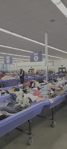 5 lanes of bins and 1 for members. Membership also get their own checkout cashier. The cashier had to separate every category for example children's clothing had to be separated from adults. I paid $55 for a cart full of clothing adult/baby items.