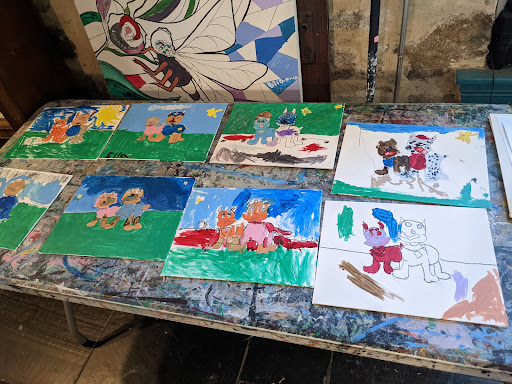 So my 5-year-old daughter had a friend's birthday party here and I had never heard of it but it was really cool. They painted on a canvas that they partially help draw and partially was already drawn for them and did some scratch art and some other things for the first hour then they did cake (brought to party) they have a little kind of screened-in type of side room that's got a little bit of a play area as well as tables for other art stuff and I didn't see the downstairs that much there is an entrance in the back that has a parking lot that we went into and the kids had a great time. It was a really nice idea for a party Is it cool studio and they offer other classes and art for all ages so definitely check it out if you're into art of any kind and if you are artistic or like me not but like to do it anyway definitely recommend checking it out . They also have a rooster on the property who is very cute and very sociable and his own way I don't recommend necessarily petting him cuz I'm not sure exactly what his role is but he walks around and it's just neat to see him. Thank you Engage Art Studio It was a good time for me and my daughter and...