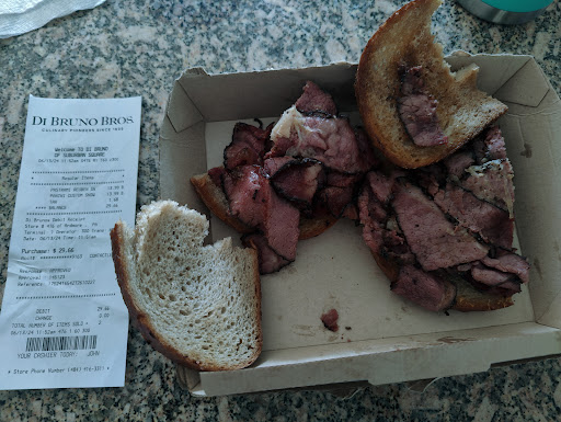 Read moreMy wife was excited to have an Italian sandwich for Mother’s Day as we had always associated Di Bruno’s with quality. It had been a year or so since we last had a Di Bruno sandwich, but, we remember beautiful cornucopia of meat, veggies and cheese that was so plentiful it was difficult to close the bread around it. You can imagine our disappointment when we found the skimpiest, saddest sandwich, esp at $16 per sandwich. I would be curious if the quality differs from the location downtown? We would be embarrassed to recommend this place.