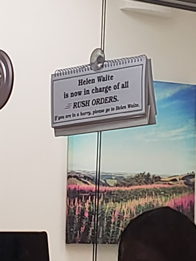 "Helen Waite is now in charge of rush orders. If you are in a hurry, please go to Helen Waite."