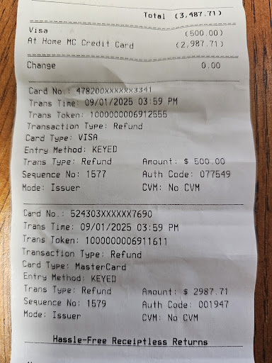 I do not recommend doing business with this location. Read my receipt in the photo. I ordered my list on a Sunday and was guaranteed a delivery of my items on the next day, Monday. I waited all day from 9am until 4 pm for delivery to my new home and never got confirmation for a delivery time. My items remained at the store, which I personally helped gather at the store. Despite my efforts to accommodate, the store never could provide a delivery time as I waited patiently at my new home for delivery until At 4 p.m. I waited all day and then was only offered 10% more off my discount without a confirmed delivery time. Save your time and go somewhere else. I was denied any more discounts for their mismanagement. They just blamed the delivery company for the delay of my delivery. I was willing to purchase a large amount yet was denied any other compensation to elevate the situation. I even offered to move the delivery date the following Wednesday to take a day off of work, which was met with no confidence in delivery. I then decided to end my business with this location due to the denial of any more assistance toward my situation. I just bought a new home and ordered multiple prices of furniture and was never told that my furniture may be delayed or not delivered on the following Monday. I will continue my complaint with corporate. Until then, I highly recommend not dealing with this location and doing business elsewhere. I was stuck waiting at my new home for 6 hours on Labor Day weekend. Do not come here expecting reliability on delivery or significant accommodation for their mistake. They didn't accommodate my situation or even accept an offer to accommodate future purchases, only a verbal promise. They need to change their policy and provide a written obligation to accommodate for future purchases due to their mismanagement, and not just pass blame to their own delivery service. Chris, the local manager, did his best, but overall, the manager in changed refused to accommodate...