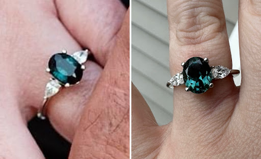 My husband and I first came to Susan when we got engaged and she helped us design the perfect ring! We honestly just came in to look around and see what the process was like (this was our first stop in searching for a ring)….but during our private consultation, it was obvious that Susan was incredibly knowledgeable and had practically infinite options for how to customize the ring of my dreams. After looking at multiple options, I chose a very specific gemstone for my center stone and we discussed how this particular stone (tourmaline) is a good bit softer than a diamond and we discussed the stores care plan and why it would be a good investment. The Lifetime Care Plan covers resizing, stone replacement, and so much more! Know how I know? I took my ring in to Susan to get resized. When they were doing a full inspection of my ring, they saw surface abrasions that I had seen too (again, it’s a softer stone and I’m not the most graceful person) but when inspecting closer, they saw something I couldn’t. A fracture that went all the way through my stone! I believe I had a bent/loose prong on the ring too. Well, since the stone was cracked and the structure of it was compromised, they covered a replacement stone for me! Just a note: I chose a very specific color of blue/green tourmaline (see pictures) and it’s not the most common option. But they sourced a PERFECT replacement stone for me, fixed the prong, resized the ring - and it was ALL covered by the care plan!! This one event made the care plan MORE THAN worth it!! Oh, and did I mention? I actually don’t live in Lubbock anymore. I moved to Alaska. But Susan told me when we bought the ring and the care plan that the plan was good for my jewelry no matter where I lived. The only thing I had to pay was shipping to get my ring back! Which was very reasonable, I might say. I am beyond happy with my experiences at Royal Hummingbird. Susan is a true student of the arts - she is constantly learning and eager to know as much as she can about gemstones and jewelry and she is truly wonderful! I will trust no one else with my jewelry - I am a lifetime customer!