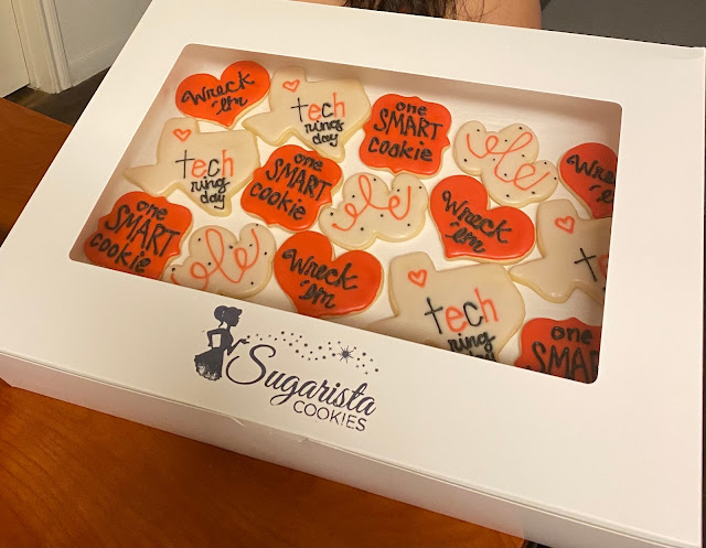 Read moreOur daughter goes to Texas Tech WRECK 'EM! and she had a birthday coming up quick...like the next day. So i looked around online for cookie delivery. We have tried other places in the past and i felt like trying something new! I found Sugarista's website and the cookies looked great and had excellent flavors to choose from. We picked out a box of 2 dozen for her and her fellow Red Raider buds as wells as some rice crispie treats. Ordering was easy and very shortly after I placed the order, I got an email from Kimberly asking if I wanted a personalized b-day card. Delivery was not a problem, she texted my daughter to make sure they would be home. They arrived at the door in a super warm box. They all said they cookies were amazing. I will for sure order again next time I need a special treat for my special Red...