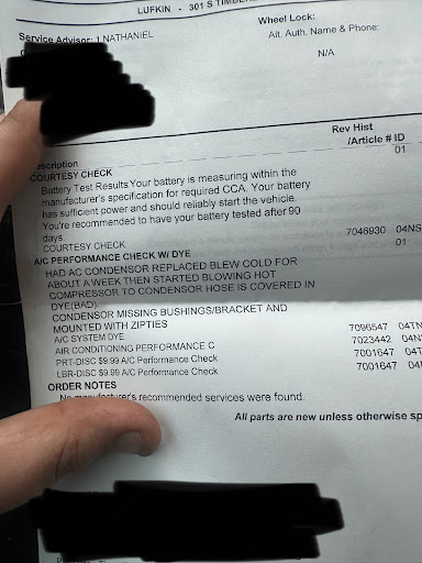 Read moreIf there was a fourth of a star, I would rate you all that! My experience with you guys was very appalling. I called and spoke with a caucasion female on Friday, August 5, 2016 asking her about the landmark sign they had quoting their $199 down special. I asked her which cars she had to offer for that specific offer. She said that I would have to come in to check it out refusing to tell me over the phone. On Saturday, August 6, 2016 I went to the site located at 1517 N. Timberland Dr. Lufkin, Tx 75901, and there was a young caucasion male cranking the cars. I asked him what were their $199 down vehicles. He pointed at a two door red cab manual truck, and a hashback golden color no trunk malibu. Both vehicles were very out of style and out of date to my liking. I then saw a silver 4x4 jeep that caught my eye. I asked how much they wanted and talked about the milage. He gave me an unreasonable price; and what they wanted down on the vehicle stated on the glass, was not the jacked up price that he stated. Next, I saw, big as day, $299 written on the windshield of a Ford Explorer; and this my readers, is what took the cake and left my cake out in the rain forever more with this particular location. I went to crank the SUV and before I could give the key in the ignition a turn he says, "It has a little ticking." I immediately stopped my search for a vehicle and thanked him for his time. Meanwhile, while I was walking back to my car I was thinking, no wonder those cars have such low deposits.. They are ALL LEMONS! Why have a lemon on your sales ground, only to have to tell the buyer we can get it fixed?! I personally heard him talk horribly about the gas and mileage: after I asked him about it. What a horrible experience, both on and off...