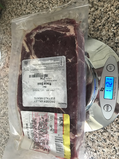 Super excited to go here. I bought Buffalo ribeye that came in a package of two. Paid $63.00 at $36.45/lb. The package I purchased said the weight was 1.72lb. I came home and weighed the package THREE TIMES! Every time: 1.12 lb. see attached pictures. LOVE being RIPPED OFF! LOVE IT! Fool me once…..