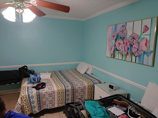 Our party of 7 stayed in Las Brisas condo 504. 3 adults and 3 kids.The view was amazing, the location was great and the condo served its purpose. The pool area was great. It seemed they heated the pool on the weekend only. They have 2 grills but one doesn’t have an ignitor so bring a lighter. We lucked out that our parking was not located under the building as we had a 12 passenger van and we wouldn’t have cleared it. Be careful when walking around barefoot on the ground level. There were quite a few cockroaches. As for the condo itself it is in desperate need of updates and a deep cleaning. The decor was very eclectic in all the rooms. (80’s kitchen ducks in the bathroom) The master bathroom has many patch jobs and could use a fresh coat of paint. The water pressure in both showers were terrible. One of the guests staying in the condo with us has well water and the water pressure was less than that. If you have long hair I suggest you wash your hair in the kitchen sink. There’s no where to hang your towels in the bathroom off the bedroom with the two double beds. You have to lift the door in order to shut the door. The window in that bedroom is very thin so you can hear the traffic on Gulf Boulevard all day and night. If traveling with smaller children be sure they don’t lock the deadbolt on the outside of that bedroom door and lock you in. There aren’t many outlets in any of the bedrooms. The room with the day bed has a mason jar style light that is more like a night light. Be sure to turn the lamp on before you head out for dinner or you can’t see when you come back. The closet in that room was filthy and had candy wrappers and rotting nerf balls that we threw out. In the master bedroom the top drawers of the nightstands on both sides are broken. And the box spring is torn to shreds underneath. While lying in the master bed don’t look up. You’ll see all the dust stuck in the popcorn ceiling. The screen door in the master has holes and is bent so it won’t stay on the track. There is random living room furniture in the master as well as extra furniture in the master closet. Including a kids picnic table. The master bathroom faucets water is backwards which we were notified of at check in. The washer and dryer definitely need to be cleaned. The washer is off kilter and is very loud. Be careful when opening the dryer as it pours out sand and seashells and is full of lint. Don’t try to vacuum it out as the hose on the vacuum doesn’t suck up anything. The broom isn’t much better. There is no mop. Much of the kitchen utensils are broken as well as the plug for the kitchen sink. There are no steak knives. There is one bigger pot if you are cooking. When we arrived the coffee pot was disgusting. It had mounds of coffee grounds around the basket where the filter goes. It takes about a half hour to brew a pot so plan accordingly. Make sure you check your dishes before using them as a lot of ours were dirty. We washed EVERYTHING before we used it. The trim on the end of the counter by the fridge is broken so be careful with your pinky toes. There is no pantry for your snacks and non perishable food items. You have to leave them on the counter. The balcony door in the living area is extremely difficult to open. The balcony furniture is not comfortable at all. There are two chairs made out of PVC piping with some sort of mesh for the seat. DON’T SIT IN THE ROCKING CHAIRS! The paint comes off on your skin and clothes. There are no cushions. There are 4 camping chairs in the front bedroom that we used on the balcony. Between 7:00 and 7:30 there were lots of dolphins. And the sunset from the balcony is...