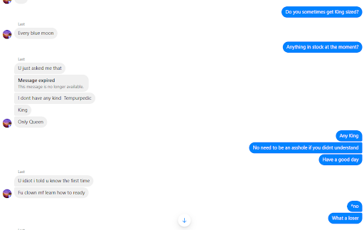Upon asking a few questions about a product on marketplace, I was met with rather immature responses to said questions. I was called a clown, told my questions were "retarded" and that my "little money" purchasing the product would make no difference to them. Seeing how unprofessional they were led me to believe they were a scam which I made apparent, but that is still left to be factual. Screenshots of messages attached. I, nor anyone I know will be doing business with them. In this day, many small businesses unfortunately must go way above and beyond the standards to remain steady and this company (or at least the social media manager) has no interest in standing out in a positive manor amongst the many other sources...