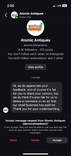 Ā Ā Ā Read moreFor an establishment that claims they like feedback they sure donāt like to show it. Iāve been planning to go place for a few months. Itās not near me, but I enjoy and taking in the Dane County area. There are a couple good antique stores in Dane County that have reasonably priced items, and I do mean reasonable for what they are so yes, there will be some pricey items, but they are worth what they are asking. This one does not fall into that. Definitely feels like a classic West side/Middleton store, a bit hoity-toity and pretentious and the prices certainly reflect that. The in person staff experience was okay, nothing to rave about. I left these comment on their instagram page where I had been getting ads but they didnāt last long there. I donāt recommend going here for an enjoyable time or much of a shopping/antiquing experience. The east side of Madison has more reasonable and better staffed establishments. Or even some vintage specialty stores near...