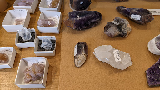 Ā Ā Ā Read moreEvery time I walk in the store it feels like a new whimsical experience. They carry everything from quarter-sized 50 cent jaspers, any size and color of agate slice you could ever want, fossil plants, fish, arthropods, and even dinosaur remains! They have minerals and rocks in the shape of animals, plates, and other fine gifts. Beautiful jewelry, including jewelry that showcases iridescent butterfly wings and beetle shells! Their pricing beats online pricing by a long-shot. The staff are great; they will help you find whatever you are looking for, they will look stuff up online, check their other store, and have even humored me by looking at photos of my aquarium, laden with cheaply-priced fish-safe rocks and minerals from their store. They occasionally set out a free box just outside their store, filled with less notable specimens of their wares, which I find a very generous and clever gesture that inevitably leads me into the store to...