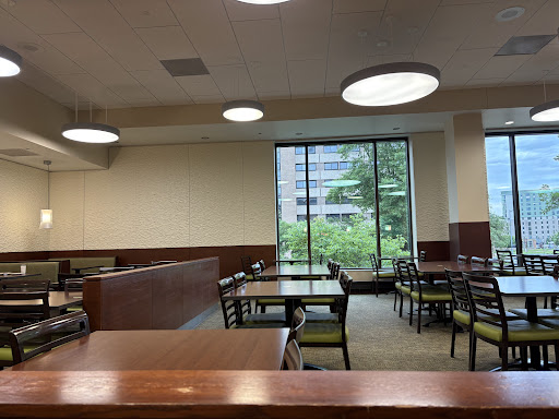 Amazing food, and good choices to choose from, it is a buffet and they serve every meal of the day . Breakfast:$7.49 Lunch: $10.05 Dinner: $10.45 They have loads of different choices of food, they do have veggie burgers and salads, all meals also come with a dessert if you want one. They do have burgers and cooked foods. Every thing that you could think would be at a regular restaurant, they have it. Weather its fruit, vegetables, vegetarian choices, meat, fries, a cookie or two, or you want something simple like macaroni. If your person that loves cereal, they always have that. Their eating tables are four different sections, depending on where you sit. They have a section right when you walk out of the area, two other sections just down the hallway and if you want to have a good eating view you can walk up the stairs and they have places that you can eat. But you have to rember that this place is by a lot of collage dorms, so there will be collage kids walking around. There may also be construction near by, depending on when you read this possibly across the street there's construction. I would definitely go anytime, very reasonable prices, amazing food, and...
