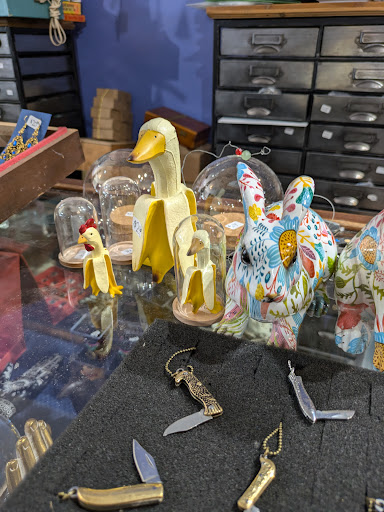 This little shoppe is a wonderland for unexpected, eccentric, truly unique gifts for yourself and others. There is a huge collection of enamel pins and well-made (hilarious) embroidered fabric patches, as well as taxidermy novelties, a very cool selection of tiny knife jewelry (I have a necklace with one on it that I haven't taken off since I got it from there earlier this month), some lovely old glass pieces, and a selection of tea and kitchen utensils that is truly impressive. Definitely check out the display of fictional room key tags--I've never seen those any place else! The owner is a gem of a lady with extensive knowledge of the area, great trivia tidbits about all the items she sells, and a wonderful sense of humour. I will be back and encourage anyone, local or out-of-town alike, to support this business. You will find something you enjoy there and you'll have a fabulous time while...