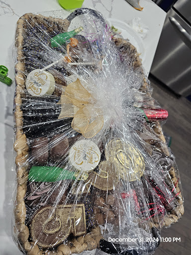 I ended up giving her my amount and asked her to put her personal touch to it and tje gift turned out amazing!!! Attached is a picture. (Wine purchased separately and brought in).