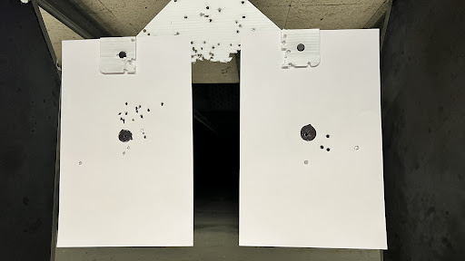 The range was the best part though. I've honestly never been to a shooting range, just shot guns a couple times in backyards. Walking up to the building and hearing gunfire sort of rattled me instinctually, and on the range it was even harder for me to get over the random blasts happening so close by. But It was nice to get actual proper training in the technique so I could learn to just focus on the target and squeeze through the trigger without flinching. You adapt pretty quickly to the noise, honestly. We started with a .22 revolver and worked our way through a .38 special, Beretta 9mm, a.40 Glock, and then a .45 M1911.
