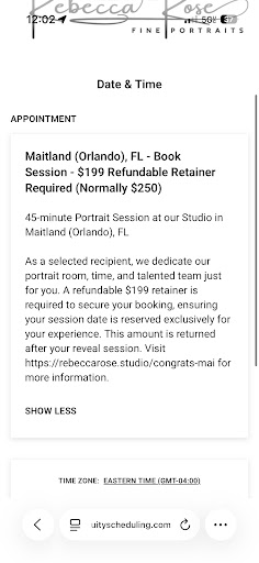 Read moreIt was a good experience until it came to my photo review I take my 5 stars back I wish I had read other reviews that had the same thing happen If you won the âfree giveawayâ pet portrait off Facebook but found out that really wasnât the case too good to be true so donât do it if you think you are getting your pictures done for free and your âfreeâ art portrait if you win the giveaway we were told it was free the whole time and there âWERE SUPPOSED TO BEâ in quotes upgrades / packages you could do IF YOU WANTED TO but that was up to you so keep in mind we had NO budget discussed we wanted to spend because we didnât think it was necessary since we were told it was a âfree portrait giveawayâ since it was our first portrait session but also now our last portrait experience at this place we wonât be back! Once we were in the zoom call and werenât interested in spending 3k-5k even more⌠there was some attitude involved you could tell that shouldâve been our hint to hang up. You get a quick slideshow of your pictures then expect the rest of the call to be ALL about money and be told your pictures get deleted RIGHT away after the call apparently so pay up now or nothing but yet they ask to use your pictures for there own advertising heck no! You get asked whatâs in your price range and right after if itâs not in your price range donât worry it all can be financed /payment plans as they say đ Always trust your gut. this wasnât just a free giveaway as they mentioned âoh just in exchange you put your word of mouth out for us to friends family etcâ for your free portrait like mentioned this WAS NOT the case. I donât recommend and wonât be to anyone to say Iâm super disappointed is an...