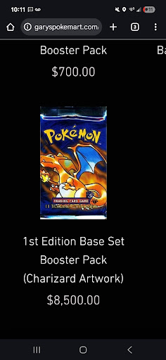 Read moreWent on the website to see if this shop had some nice graded cards for my collection. Not only there was nothing on the website besides sealed vintage, these vintages are going over market value. 1st Edition Shadowless Base Boostsd goes for arould $2000-$3500- maybe higher if it is graded. How are you gonna sell an ungraded card pack for ALMOST $9000? Looking up the highest listing to use as an indicator is not a smart move, unless you want less buisness and...