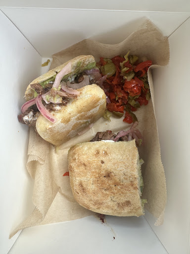 $16 for a sandwich is steep, especially for to-go only service. We had a tri-tip and a beef sandwich. The beef was EXTREMELY salty and no depth of flavor. Tri-tip was okay, same one note flavor. But the biggest problem is that there are no complimentary flavors in the sandwich. It has mayonnaise, cheese, avocado meat, some raw onions on a buttery bread with a very spicy relish. It's just an overwhelming bite of fats, with fats and more fats with some heat. Neither one of us could finish the sandwich. :(