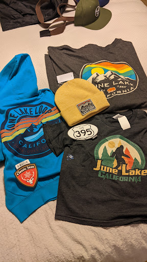 We have been visiting June Lake regularly for the past couple of years. We make it a point to stop at this shop on our way out. They have great June Lake clothing and gifts. We have gotten to chat with owner Dean a few times and he is just the nicest guy. We love getting souvenirs here. They have a great collection of stickers for you gear and we always grab a new tshirt and hoodie. They also are law enforcement friendly and have a wall behind the counter with patches from numerous agencies. You can ask him anything and he's extremely knowledgeable and friendly. Please support his shop!!! They are also on IG...