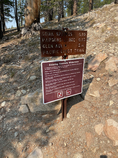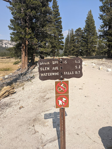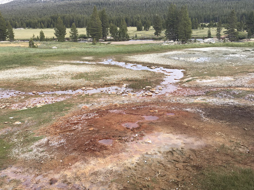 Probably not worth a trip on it's own, but a nice little "extra", if you happen to be walking through the meadow near Tuolumne visitor center, or taking the hike to Glen Aulin. Orange-colored water bubbling out of a couple of holes, surrounded by a roofless hut. Interesting...