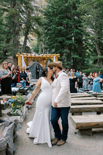 Forest Chapel at Twin Lakes is probably Mammoth's original wedding venue and it's also probably the most popular/most used. I've photographed countless weddings there and it never fails to be the quintessential California mountain ceremony site. Guests walk across a bridge (spanning Twin Lakes) and through the forest to get to the venue. The seats are tree trunks cut in half. You'll occasionally see bears wandering along the lake in the background--it's a classic spot and I love shooting there. Most people hold the ceremony there, then shuttle to either the gondola for a McCoy Station reception, or go down to Camp High Sierra or The Mill. It's a really cool set up that's proven to be one of Mammoth's go-tos for...