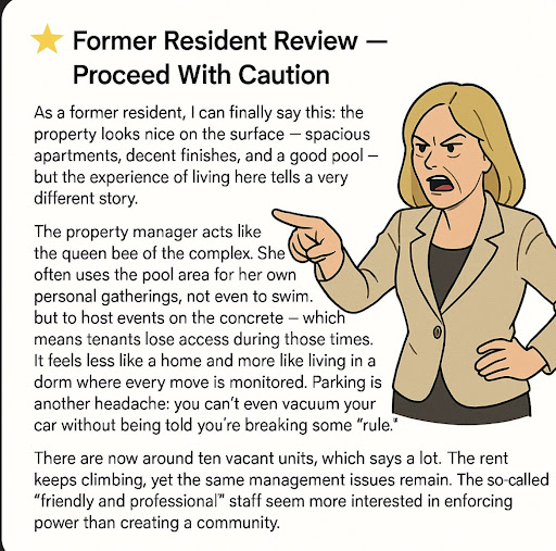 Agreeing with everything that this guy said below: "Cons: Very expensive for being treated as if you live in a college dorm. The management drive you crazy with all of the ârulesâ and then nickel & dime you for every penny possible upon move out as well as at the pool. The apartments are not sound proof at all, you will hear every bump from every neighbor around you. The apartments are also poorly constructed, and youâll get to know the maintenance team a little too well."