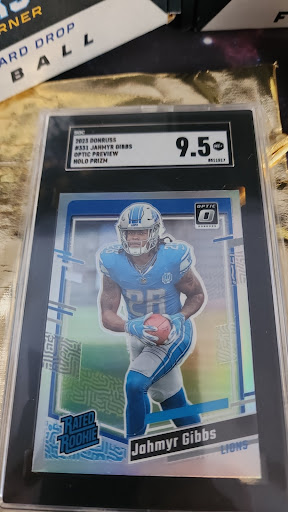 So, little bit of a post, hopefully worth the read. We traveled from Kansas to Loveland, Colorado for Thanksgiving this year and it's tradition to grab sports cards from the Scheels there and open on Thanksgiving day. We normally just grab the basic boxes and hope for a decent lucky pull. This year, however was different. I saw some kids ask an attendant to help them grab some higher priced boxes from a locked shelf and this peaked my interest. When I inquired about different boxes with different names, the Bunks Box was very highly regarded and very economically priced, so I decided on one of those for this year's Thanksgiving opening. I received a 9.5 graded Jamir Gibbs among some other NFL friends. I was instantly hooked...