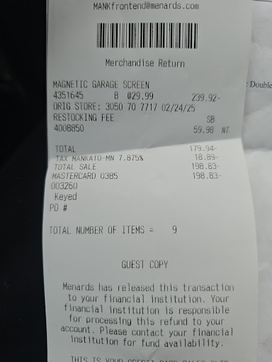 After this experience I emailed corporate Menards to inform them of the incident. They apologized and forwarded my email onto the store manager who failed to respond to me for nearly a week. I emailed corporate Menards a second time and got a response from the store manager a few hours later with a half hearted apology and overall lack of caring.