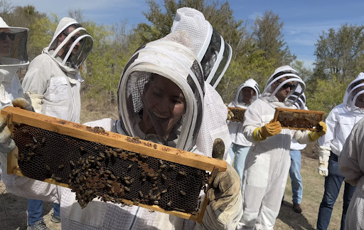 Now, I’m not going to spoil too much of the experience of the tour, but I will say that even for someone who has spent a great deal of free-time learning about bees, there was still much I didn’t know. The tour was hands-on, interactive, and so much fun! The best part? Suiting up and getting a peek inside of a hive. Despite being early April, very soon after a late cold-front and lots of rain, the bees were hard at work. Pollen was being collected, the hives were buzzing, and (the most unique experience to witness) babies were being born. Holding a frame from the hive and looking straight at a little baby bee making it’s way out into the world was a truly remarkable experience. It was about as ‘up-close-and-personal’ as one could get.
