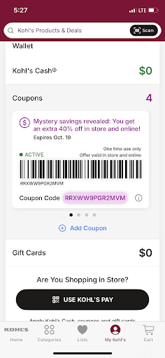 Read moreTried to contact Kohls customer service directly but site isn’t working. Shopped this location this evening because I had a 40% off and needed towels. When checking out I went to register 5. Cashier was Pete or Peter. He rang all my items and coupons, conversation was very polite…. Until, he asked if I put in my kohls card. I said I’m sorry I don’t have my card with me, I’m using my debit card. He then firmly reprimanded me and said “Do NOT do that again” I said I’m sorry do what. He went on to tell me that I am not allowed to use the coupon without my card. I said the coupon states when you need to use your kohls card and this one does not state that. He said well we are told here that you must use your kohls card so do NOT do that again. I am 48 yrs old and do not appreciate being reprimanded like I am his child. I have shopped this location for a long time and that experience makes me not want to come back! Adding the photo to see it does not say...