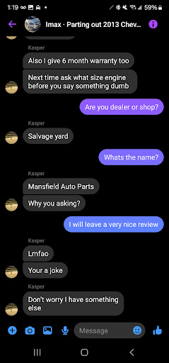 Read moreCall to order parts The kid at the front counter was so rude said they couldn’t deliver because of the price of gas offered to give $20 for gas never delivered the parts called to ask why said it didn’t happen. When I asked if my parts be delivered tomorrow and I wasn’t gonna pay the extra $20 for gas he said oh yes you are or I’ll cancel your order. He never answer the phone stating what the business name was had to ask if I was calling the right number. I order a lot of used auto parts I have use this business before I am so disappointed asked to speak to the owner he said he was the owner when I said that he wasn’t he said I have to email the owner.. This kid does not belong Customerservice I...